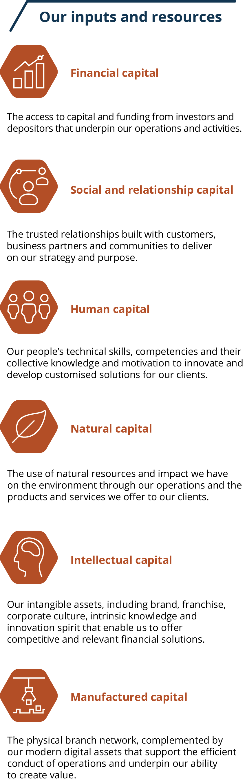 Our value creation model illustrates how we deploy our resources and expertise to generate long-term value for our stakeholders. By aligning our activities with our strategic priorities and responding to material matters, we generate both financial and non-financial outcomes while safeguarding against value erosion.