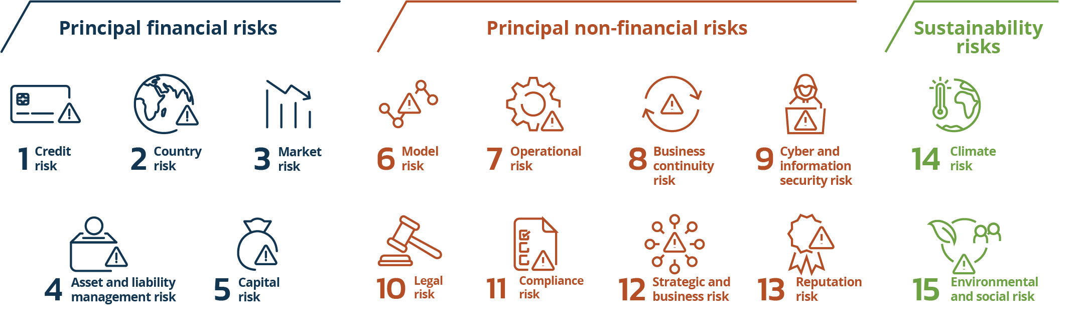 The environment in which we operate remained complex and volatile, with persistent headwinds influencing our operations, though the relative easing in monetary policy provided some relief to global financial conditions. In this uncertain context, our overall risk profile stayed within the established limits of our risk appetite, underpinned by robust and proactive risk management practices across the Group. We continued to actively identify and assess risks from both external and internal sources, enabling us to address potential threats and capture opportunities. In this regard, we updated our Enterprise Risk Heat Map to reflect the unfolding risk landscape and prioritise risks that could materially affect our operations, financial performance, solvency, or strategic direction.