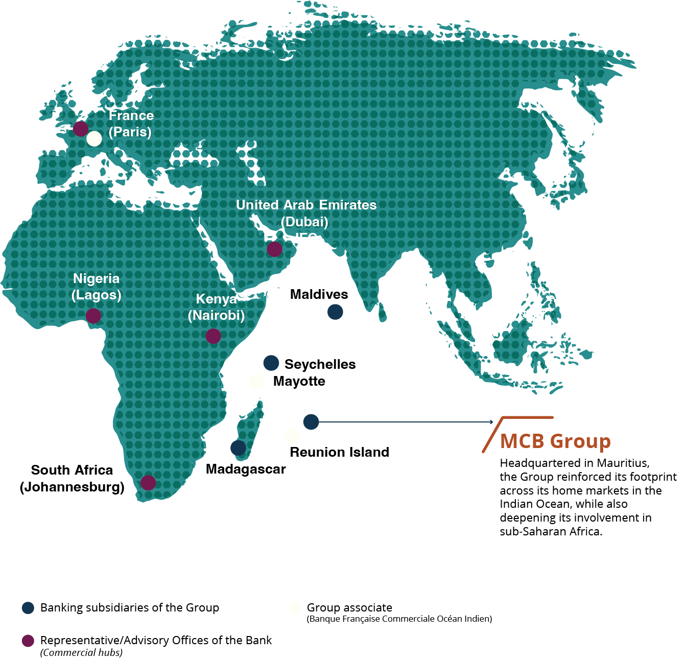 MCB Group is a reputable and prominent regional banking and financial services provider, offering a comprehensive range of tailored and innovative solutions through its local and foreign subsidiaries and associates.